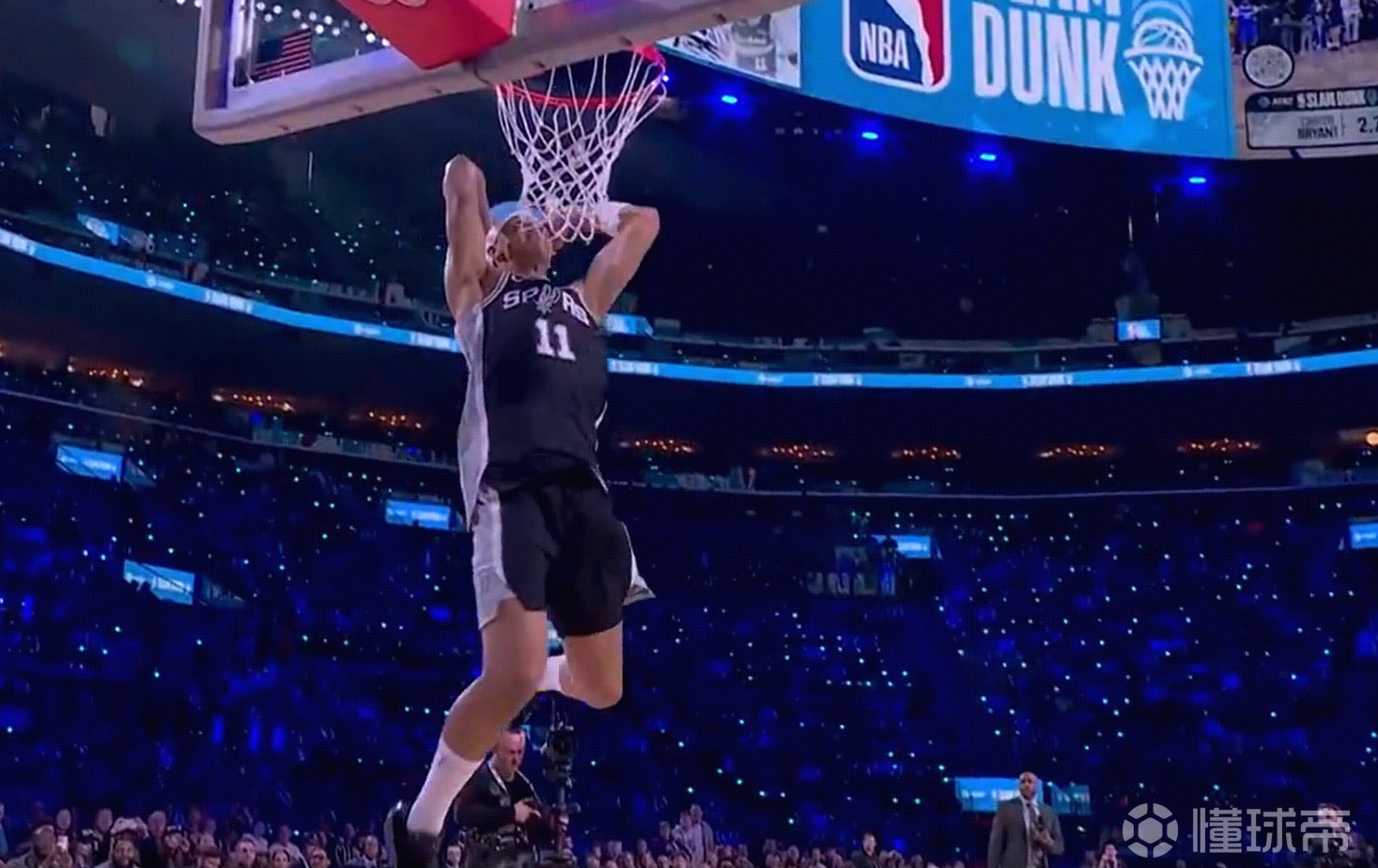 凯沙德-约翰逊底线助跑,完成胯下扣篮,得到49.6分。