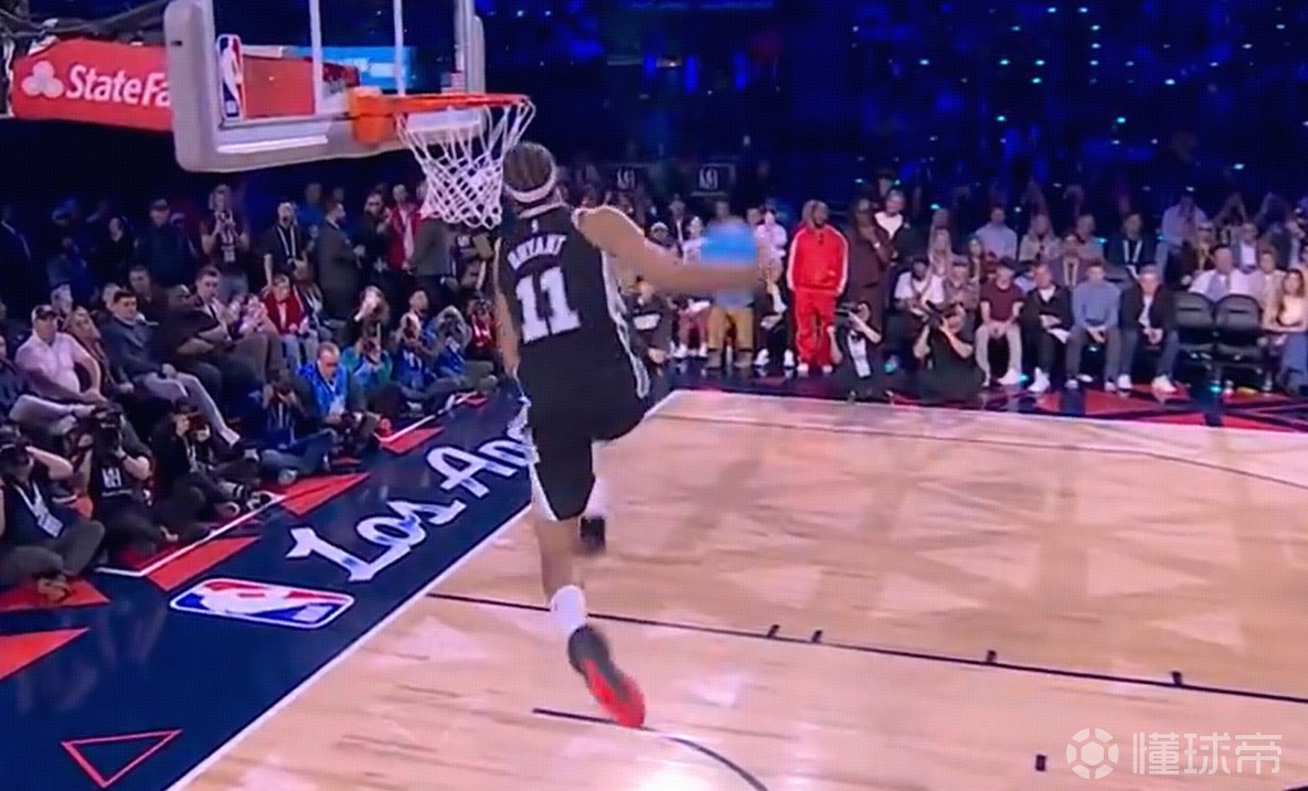 卡特-布莱恩特完成胯下大风车,得到本次扣篮大赛唯一一个满分扣篮,并将字母哥惊出“表情包”。